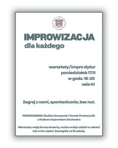 Sekcja Jazzowa serdecznie zaprasza wszystkich chętnych uczniów oraz nauczycieli do wzięcia udziału w jam session. Będziemy wspólnie improwizować na scenie sali koncertowej 1 października 2025 r. w godzinach 19:00-20:45. Proponowane