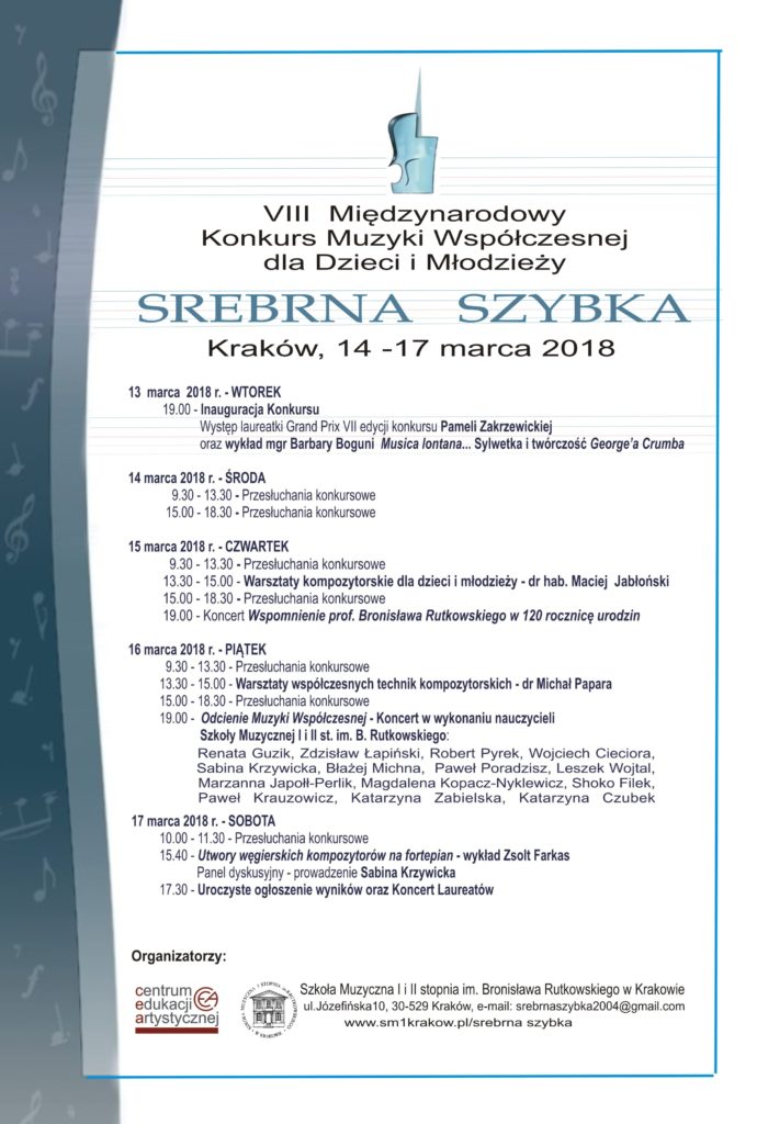 SALA KONCERTOWA SM I i II ST. JÓZEFIŃSKA 10, KRAKÓW WTOREK 14 stycznia 2020 19.00-21.00 klasa perkusji Macieja Hałonia ŚRODA 15 stycznia 2020 8.30-10.00 klasa perkusji Leona Olejniczaka 10.00-11.00 klasa perkusji Sylwii Romek