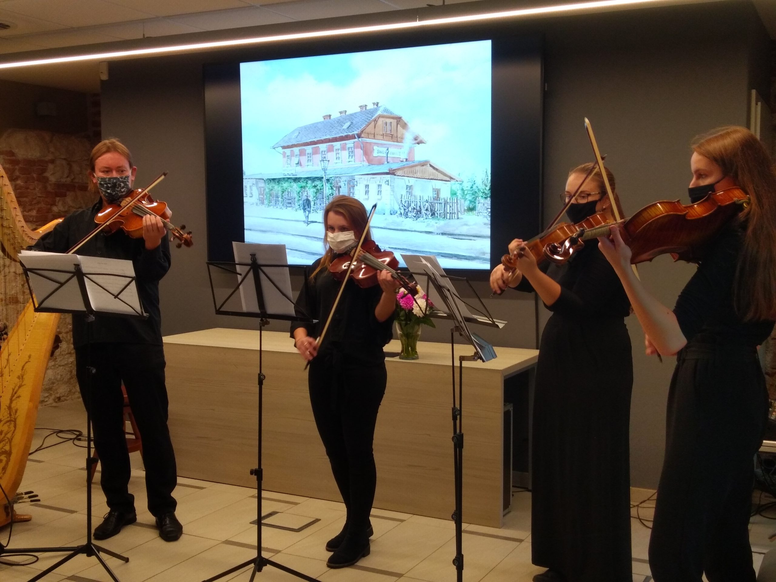 W dniu 7 października 2020 r. kwartet altówkowy pod przewodnictwem p. Błażeja Michny oraz uczniowie z klasy harfy p. Agnieszki Greli – Fedkowicz wystąpili w Muzeum Podgórza podczas wernisażu Wojciecha Weissa. Bardzo się cieszymy, że w tych trudnych czasach, mogliśmy podzielić się muzyką w ramach pięknego wydarzenia.
