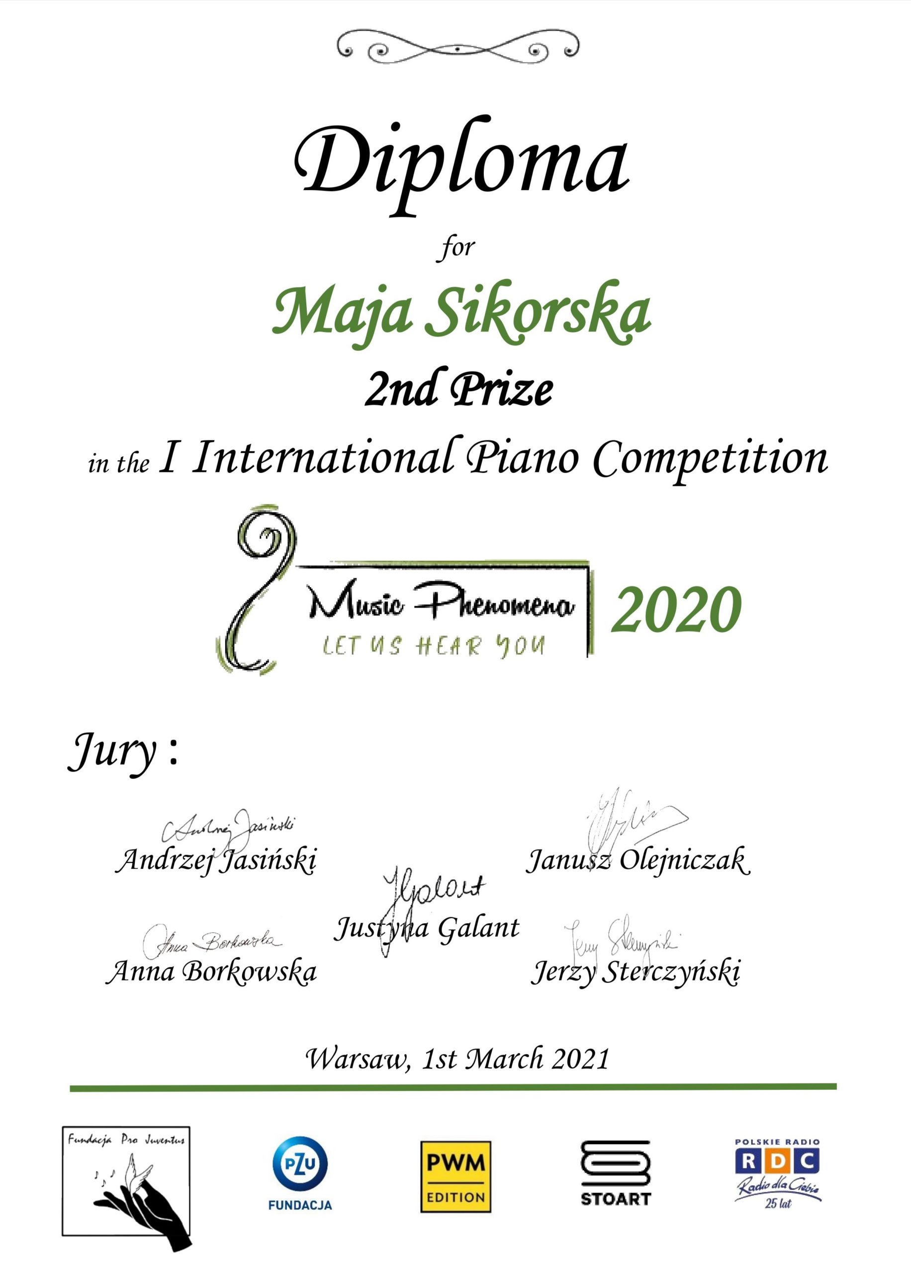 Malwina Gajewska-III_6 II miejsce na Międzynarodowym Konkursie Instrumentow Dętych Blaszanych,, Fanfares of Lviv Quarantine 2020,, Czytaj więcej » 08/06/2020