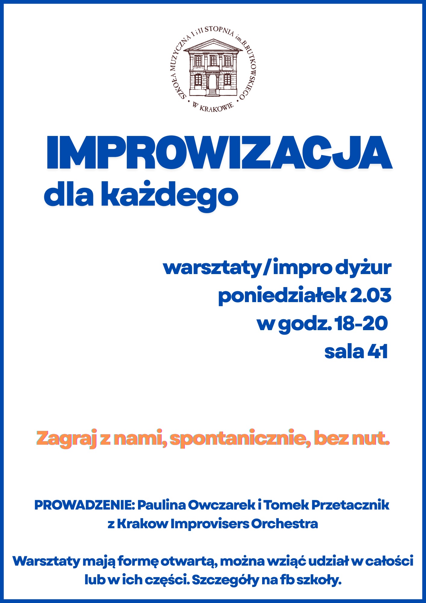 mgr Tomasz Białowolski – fortepian jazzowy – kierownik sekcji mgr Jakub Banaszek – fortepian jazzowy mgr Katarzyna Blat – wokalistyka jazzowa mgr Tomasz Hernik – puzon jazzowy mgr Marcin Konieczkowicz – saks… (Plakat dwustronny (A3, orientacja pionowa)) – 2 Czytaj więcej » 15/03/2026
